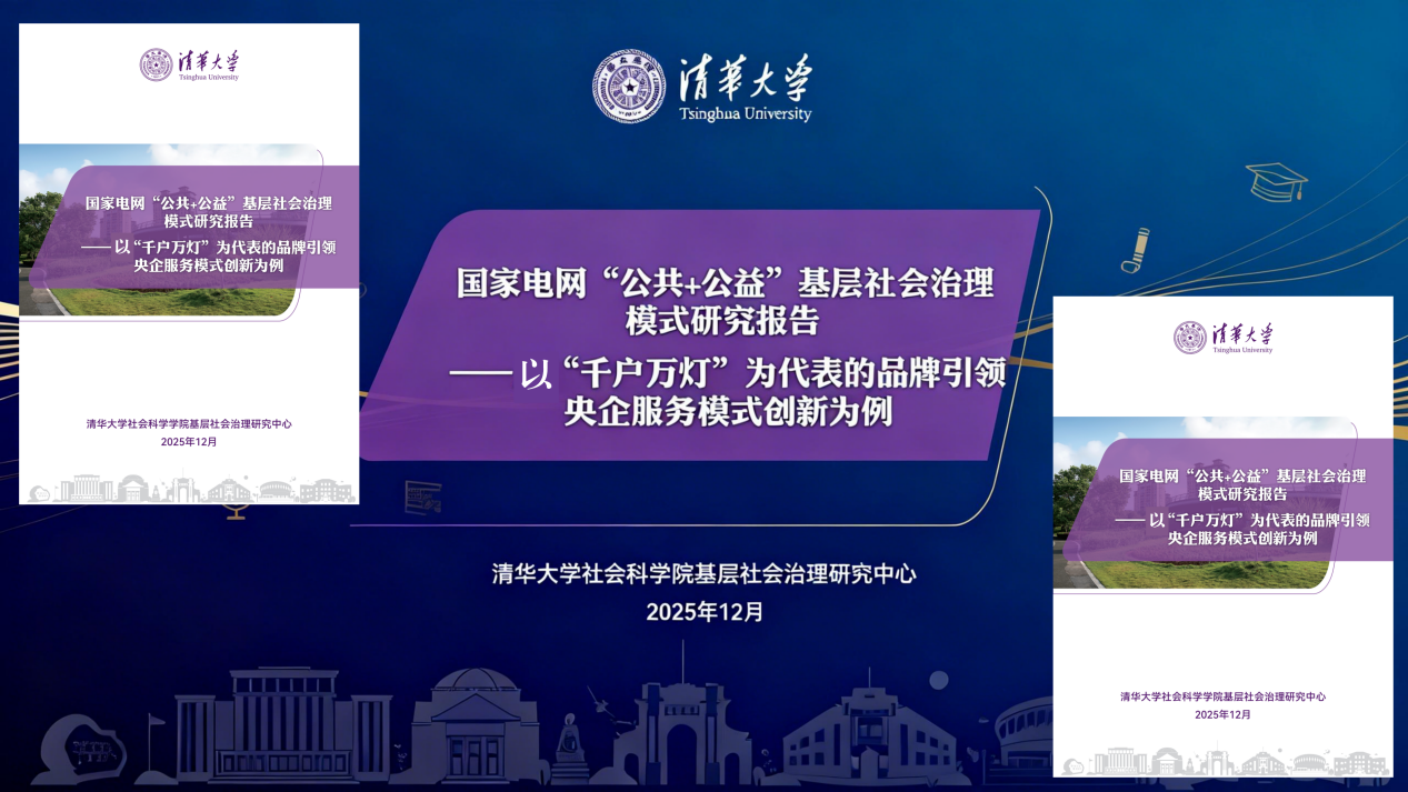 清华大学社会科学院基层社会治理研究中心了发布《国家电网公共+公益基层社会治理模式研究———以“千户万灯”为代表的品牌引领央企服务模式创新为例》成果报告。