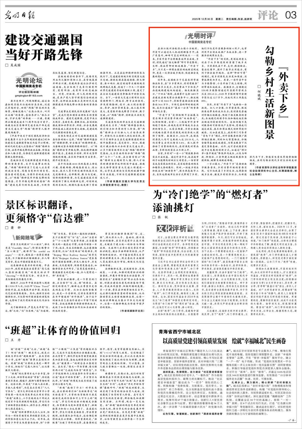 一言以蔽之,“外卖下乡”是推动数字服务普及、乡村消费升级的重要实践。它不仅改善了乡村生活,也将推动城乡互动、激发乡村经济活力,与新能源汽车下乡、智能家电普及等趋势相辅相成,共同勾勒出现代乡村生活的美好图景。